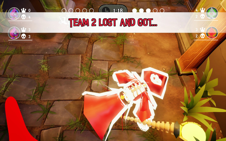 To better show what is happening at the end of the round. I implemented a fast camera zoom, that puts the game in slow motion. The camera zooms to the last player dying to show who died. After the zoom a screen pops up with what team has won.