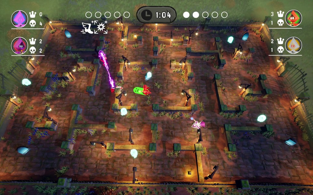 Each match starts with two teams, who spawn into a haunted cemetery. To win, you must collect ghosts and blast them at the enemy team but here’s where the havoc begins!